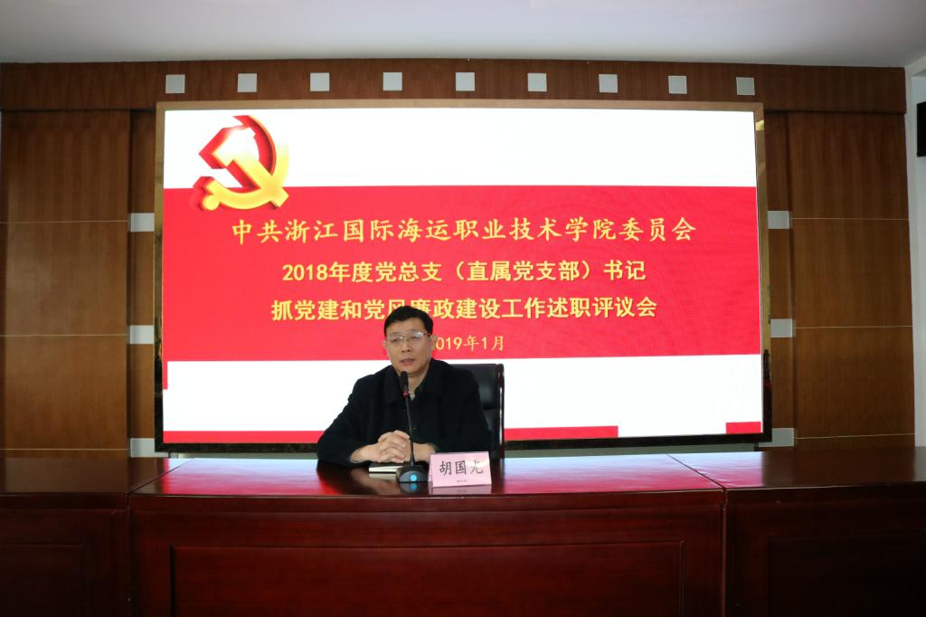 校党委副书记胡国光对各党总支(直属党支部)书记的述职报告进行了现场点评。他充分肯定了大家在2018年党建与党风廉政建设工作中取得的成绩,指出了当前工作中存在的问题,并就进一步强化基层党组织抓党建工作提出新要求。他指出,各党总支(直属党支部)书记要以这次述职会为新起点,抓好工作落实,不断提升基层党组织建设质量,以高质量党建引领保障学校高质量发展。