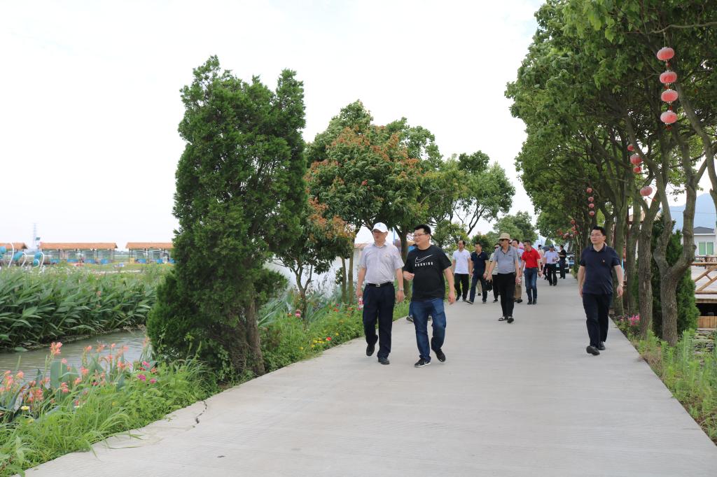 当天上午,天朗气清、艳阳高照,党员们首先来到普陀展茅“美丽海岛”田园综合体,穿行于荷塘与稻田间,体验“现代农业+休闲旅游+田园社区”一体的特色小镇和乡村综合发展模式,感受着城乡一体格局下舟山现代渔农村的发展活力。