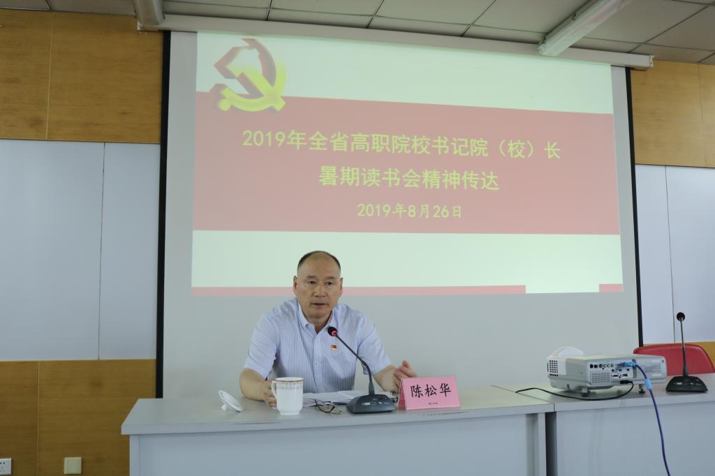 会上,党委书记陈松华重点传达了省教育厅党委书记、厅长陈根芳在2019全省高职院校书记校长(院长)暑期读书会上的讲话精神,陈根芳书记在讲话中指出,要充分认识当前职业教育的发展新机遇、浙江高职教育的现状和问题、新时代职业教育的历史使命和现实任务,按照国家“职教20条”的领航定向,把握“风口”,改革创新,全力以赴打好一场职业教育提质升级的攻坚战。会议提出了八方面的要求,一要切实增强职业教育的文化自信,二要坚持和落实立德树人根本任务,三要探索完善职业教育体系,四要加强高职教育内涵建设,五要推进产教融合,六要发展职业教育社会培训,七要坚持把“双师型”教师队伍建设作为办好新时代高职教育的基础性工程,八要提升职业教育开放合作水平。