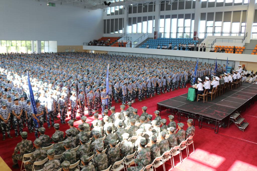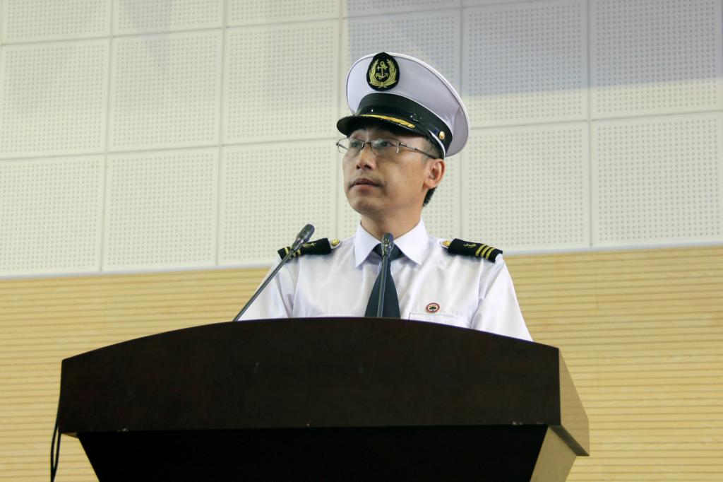 党委副书记、校长吴中平向相约海运的2365名新同学表示热烈欢迎,向承训教官致以最诚挚的谢意,并为庄利华、王倩、苏天元、朱思伟四位2019级新生送上了特别的生日祝福。他说,风好正扬帆,苦尽甘自来,学校将尽可能为大家创造足够广阔的舞台,供大家驰骋。