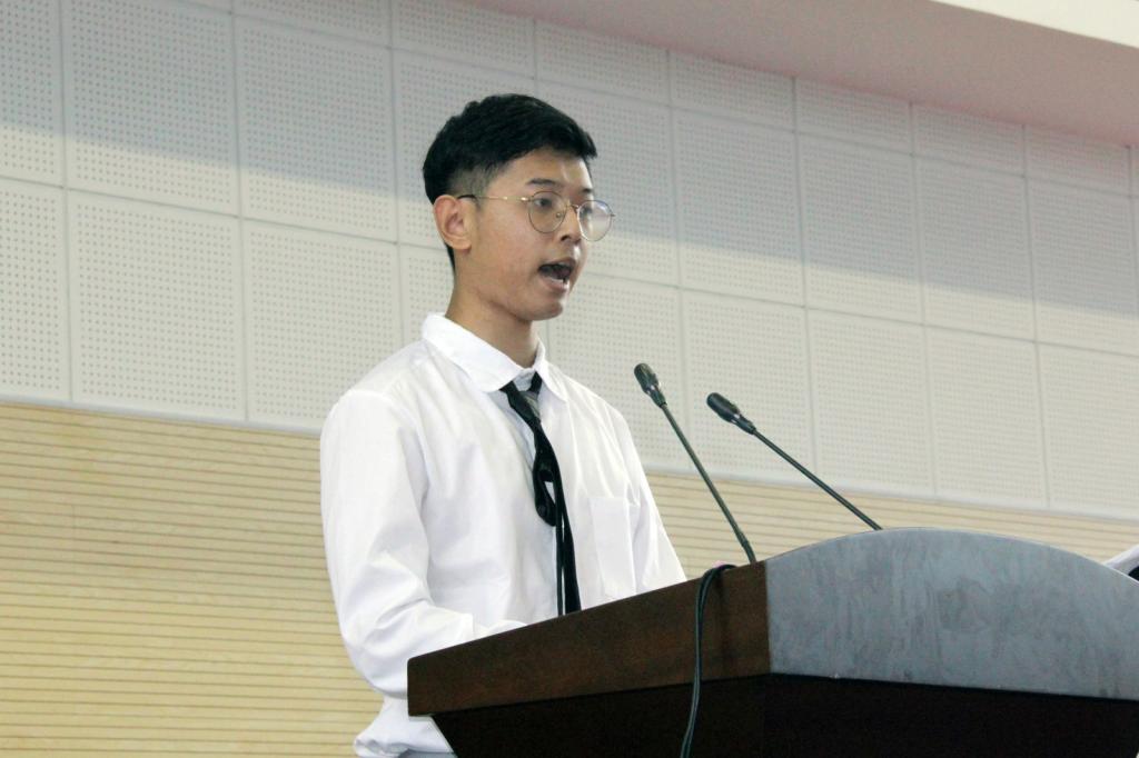 国际教育学院2018级工业机器人技术(中乌合作)班吴柯霆同学代表老生发言。他对2019级新同学们加入海运大家庭,成为“海运人”表示欢迎,并鼓励学弟学妹们提早做好职业生涯规划,合理安排大学生活,珍惜身边的每一个人,在新的起跑线上,迈上开阔的人生道路,书写精彩的人生篇章。