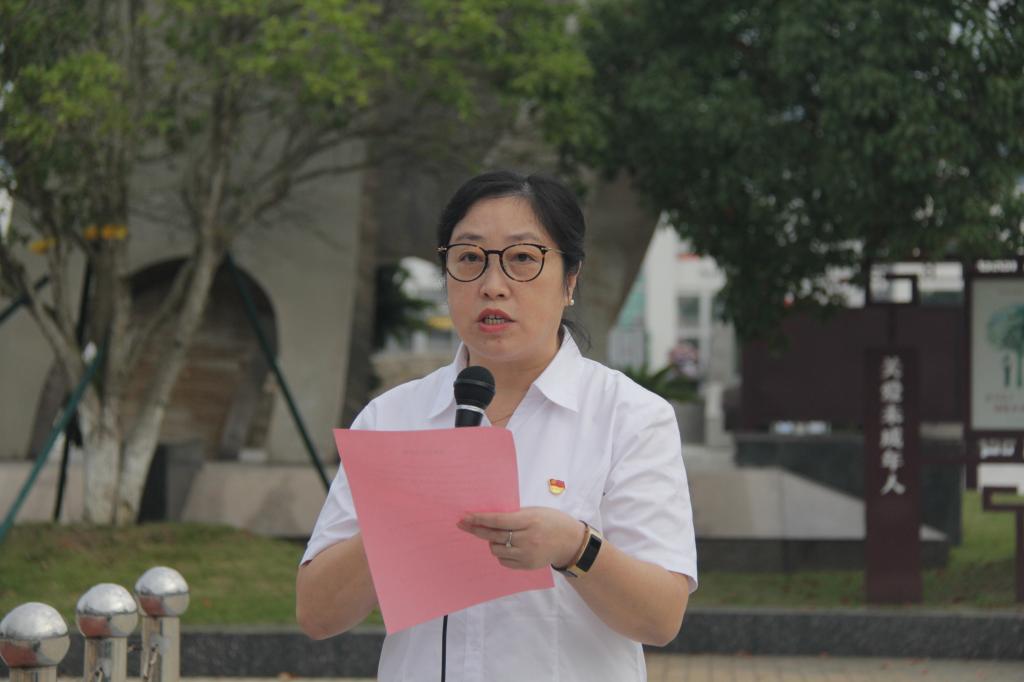 校党委委员、副校长曹志斌作国旗下讲话,他说,“70年来,共产党人坚定履行着‘不忘为人民谋幸福的初心、牢记为民族谋复兴的使命’的诺言。今天,全党上下正在举行“不忘初心 牢记使命”主题教育,是要再一次唤起共产党人的初心,唤醒共产党人的使命。让我们用知识和汗水,以满腔热情,拥抱新的希望;用崛起的跨世纪宣言,迎来全世界艳羡的目光;用我们的青春和力量一起为中华民族伟大复兴的中国梦添砖加瓦!”