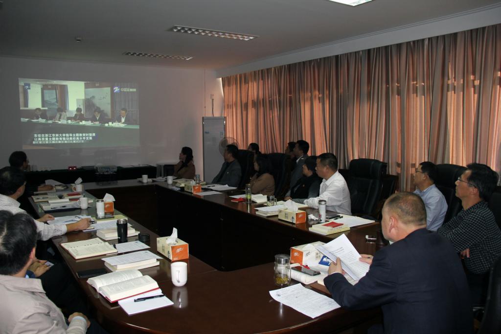 与会人员认真学习了《中央“不忘初心、牢记使命”主题教育领导小组 中共中央纪委机关 国家监察委员会关于印发杨晓渡同志在专项整治漠视侵害群众利益问题工作推进会上的讲话的通知》(教组发[2019]32号)、《关于紧密结合正在做的事深入推进主题教育的通知》(浙教办发[2019]20号)和关于学习十九届四中全会的相关文件精神,以及省委书记车俊在浙江农林大学指导主题教育的讲话精神。
