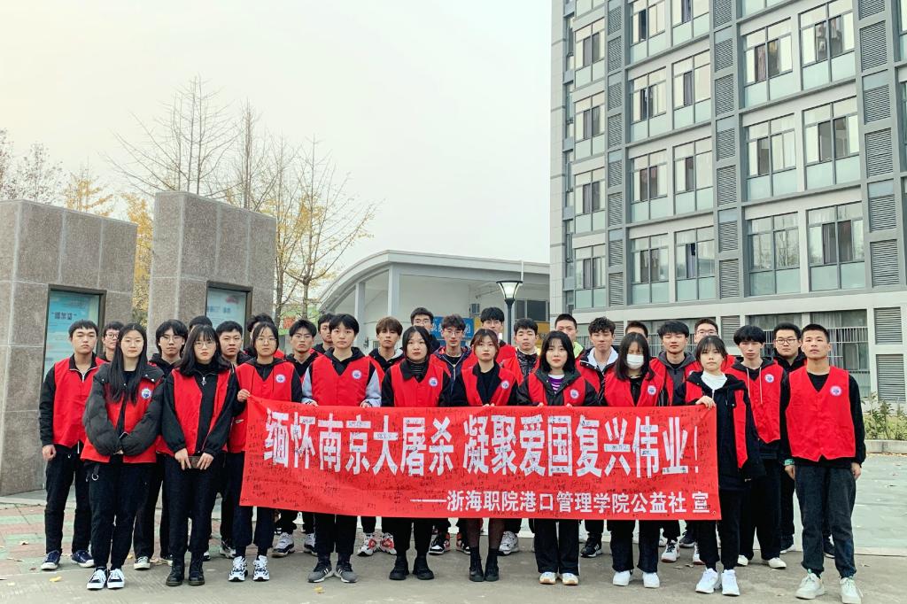 为提醒青年学生们勿忘国耻、自强不息,深入了解社会现状,提高爱国主义精神,12月13日,港口管理学院公益社开展了以“勿忘国耻,铭记国殇”为主题的相关纪念活动。
