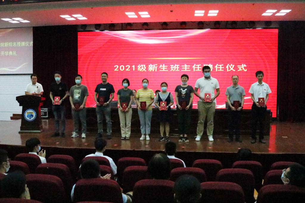 海洋装备工程学院党总支副书记於国元为2021级新生班班主任颁发聘书。学院院长李海波从学院、教师、学生三个角度进行了发言,表达了对新生的期望,对教师的激励,对学院发展的展望。