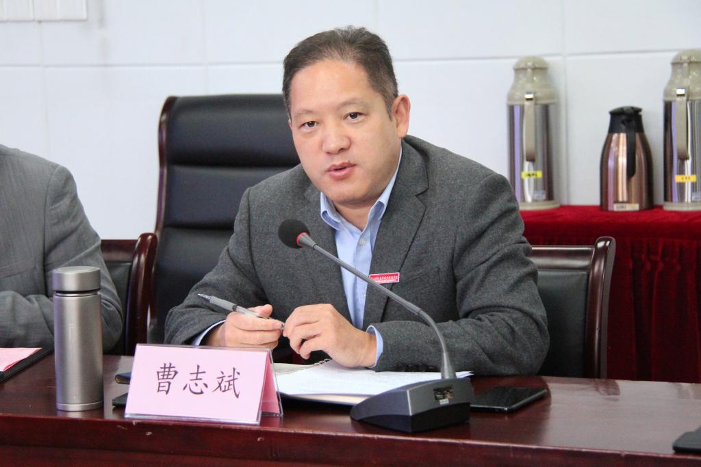 曹志斌副校长从绿色学校创建主要做法、工作成效、目标规划等方面向专家组做了汇报。