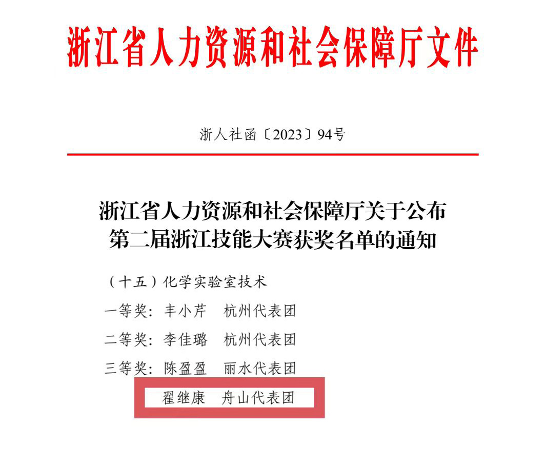 本次大赛由浙江省人力资源和社会保障厅主办。该赛项为个人赛,要求选手独立完成“化学分析”“仪器分析”2个实操模块竞赛,考核内容涉及物质的定性分析、定量分析和质量控制等,主要考查选手掌握物质分析的基本理论知识。