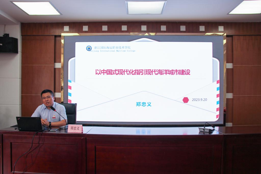 马克思主义学院院长郑忠义作了题为《以中国式现代化指引现代海洋城市建设——学习贯彻习近平新时代中国特色社会主义思想核心要义》的专题辅导。郑忠义围绕主题,以“从三件了不起的大事看两个确立”、“全面贯彻习近平新时代中国特色社会主义思想”和“以中国式现代化全面推进现代海洋城市建设”三方面,深入浅出地讲授了习近平新时代中国特色社会主义思想,令在座的党员同志们受益匪浅。