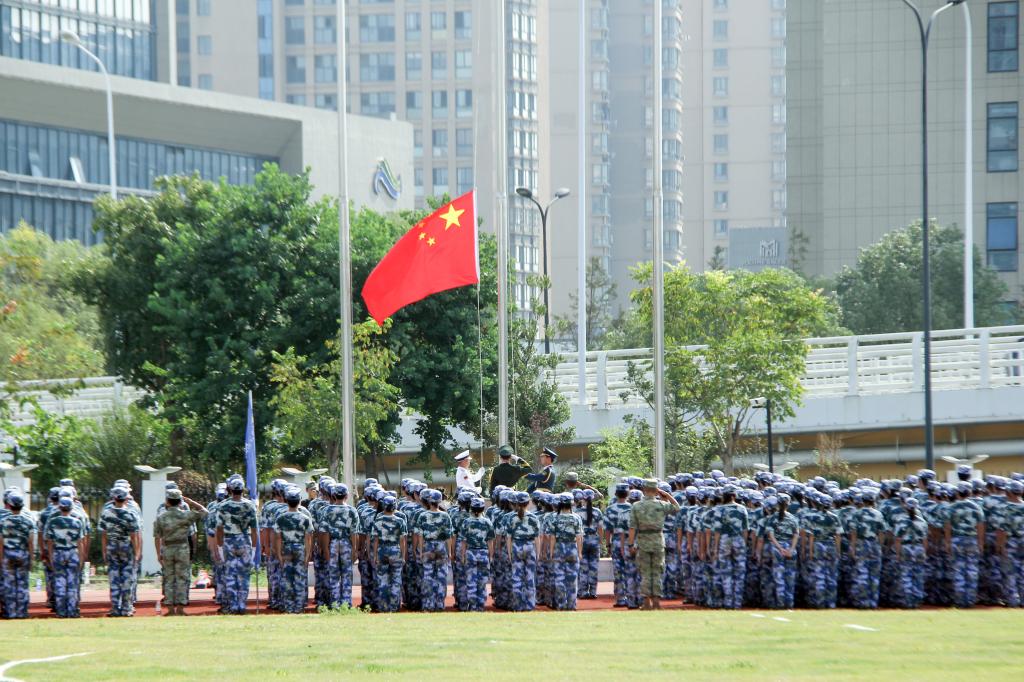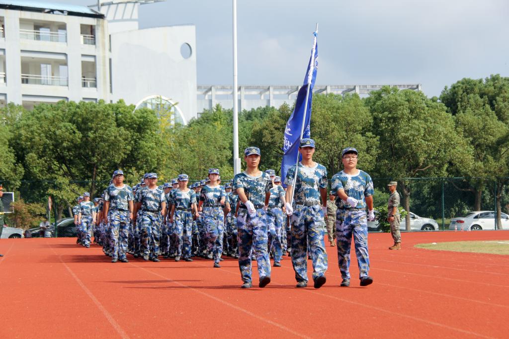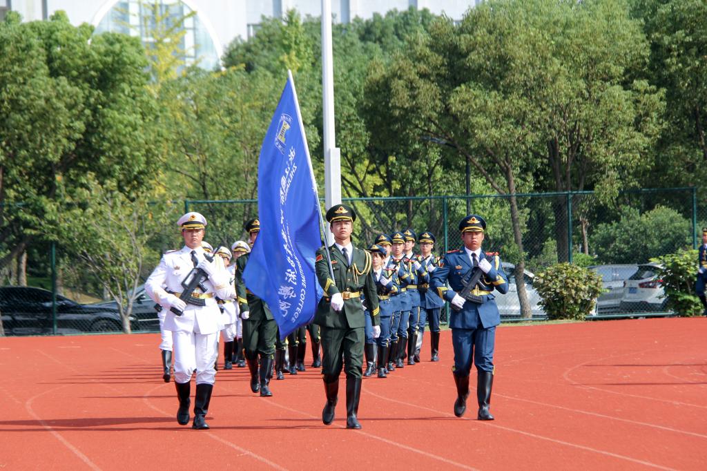 在庄严肃穆的升旗仪式后,2023级新生进行了分列式汇报表演。伴随着激昂热烈的军乐声,航海工程学院、海洋装备工程学院、现代港口贸易学院、海洋旅游学院和国际教育学院的参训新生方阵,以饱满的精神、整齐的队形、铿锵的步伐和响亮的口号,依次迈正步、行军礼,从主席台前经过接受检阅。同学们朝气蓬勃,意志坚定,展现了大学生积极向上的青春风采。