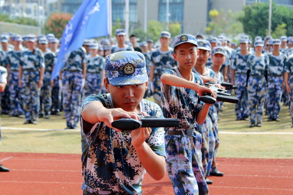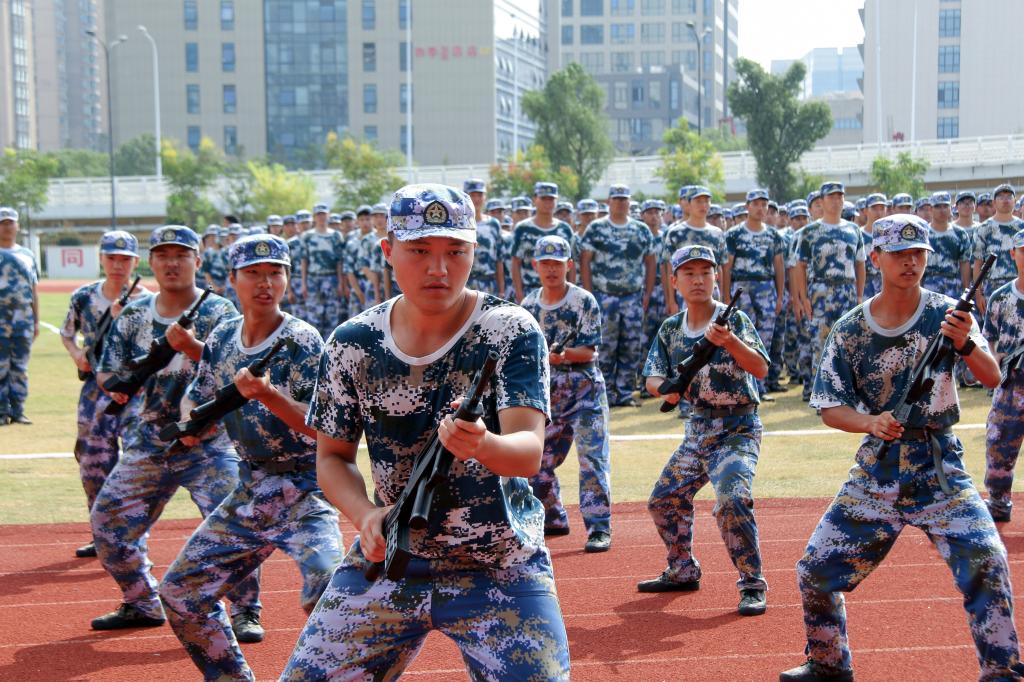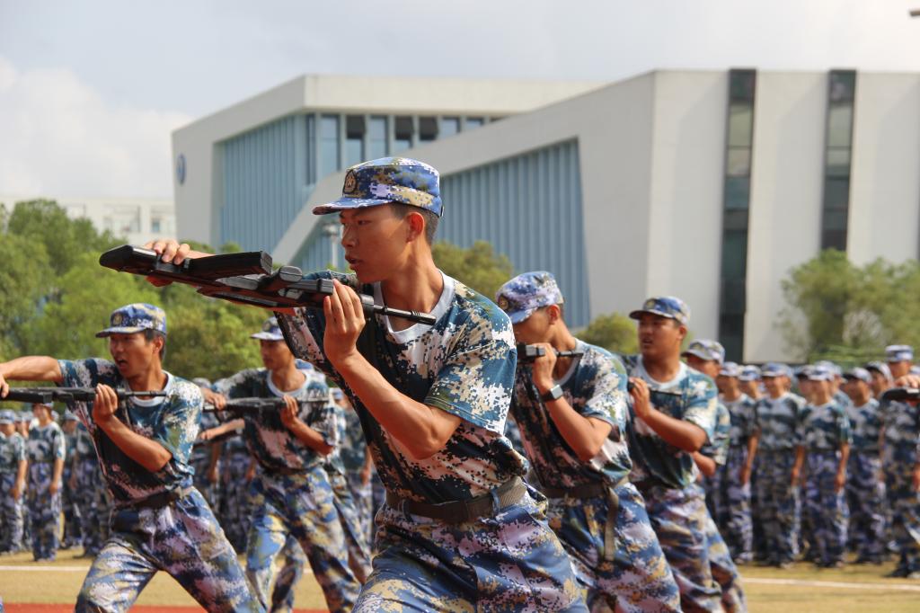 分列式方阵表演结束,由24名新生组成的方阵进行了刺杀操表演,动作整齐划一、招式轻快干练,尽显青年本色。