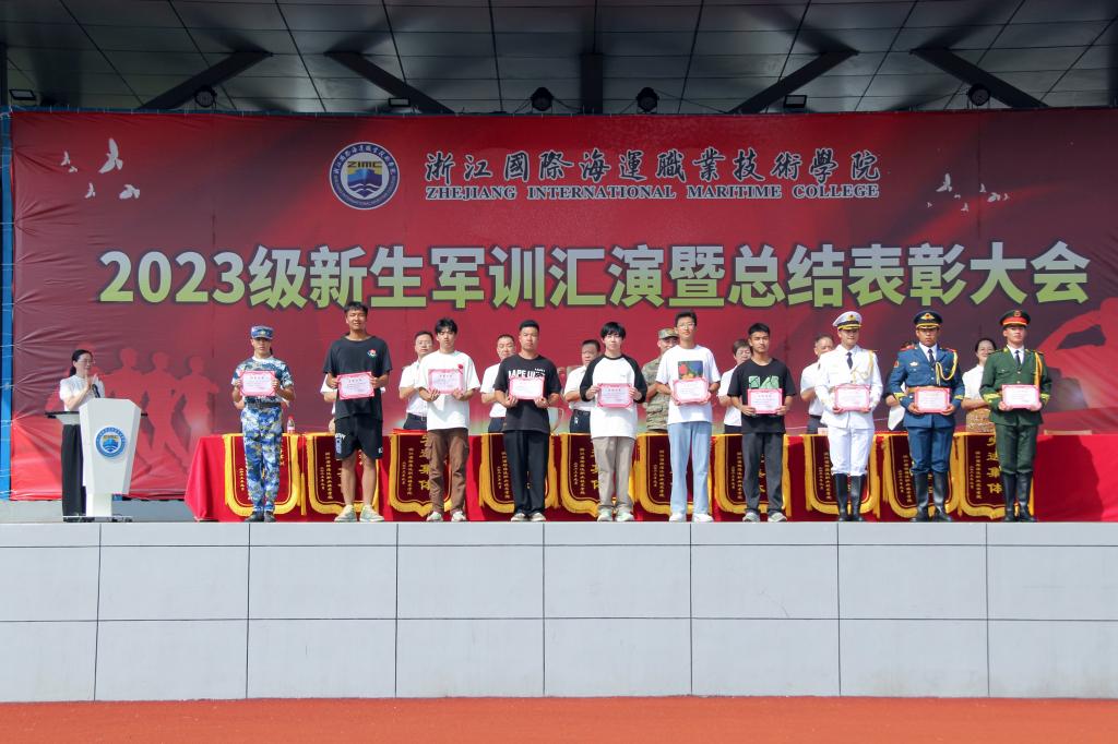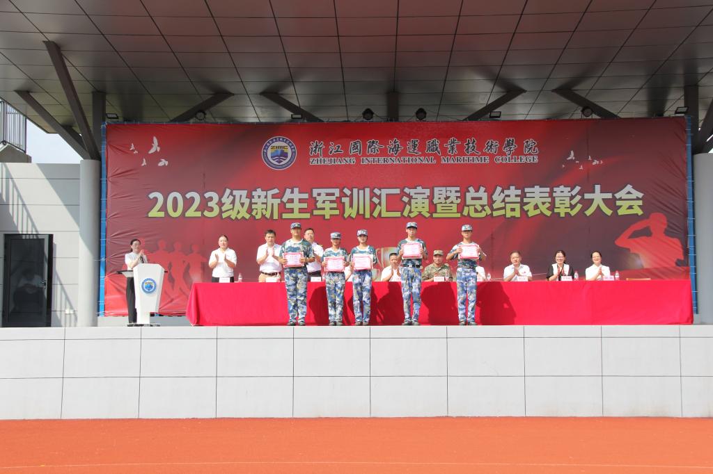 芮明珠宣读了《关于表彰2023级军训先进集体和先进个人的决定》,参会领导分别为获奖的优秀集体和个人颁发了奖状、证书。