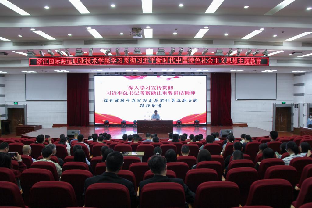 26日上午,校党委书记苏为泽以深入学习宣传贯彻习近平总书记考察浙江重要讲话精神 谋划学校干在实处走在前列勇立潮头的路径举措》为题,在图书馆四楼报告厅为学校中层正副职干部、机关第一党支部党员、学生代表讲授了生动的党课。