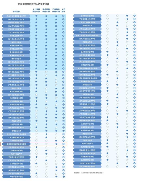 日前,由中国教育科学研究院牵头完成的《2023中国职业教育质量年度报告》发布。报告从人才培养、服务贡献、产教融合、发展保障等方面,向社会全面展示各层次职业教育提高质量的举措、经验和成效。本年度报告在过往的指数研制与评选基础上进行优化,分为东部地区、中部和东北地区、西部地区,各评选出50所人才培养卓越高等职业学校、50所服务贡献卓越高等职业学校、50所产教融合卓越高等职业学校。我校成功入选东部地区前50所产教融合卓越高等职业学校榜单。