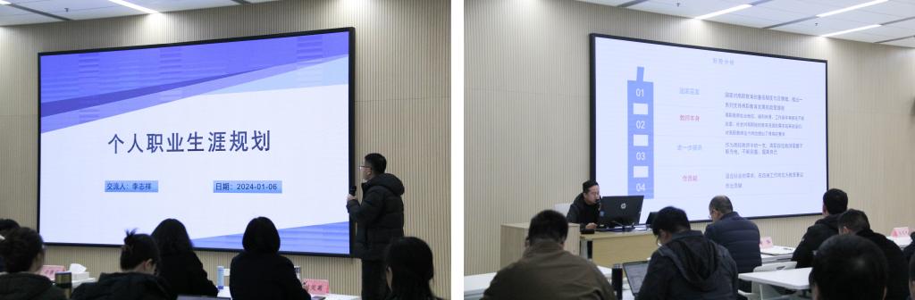 在随后的职业生涯规划交流环节,航海工程学院的李志祥和许长青,现代港口贸易学院的刘洲南和徐明伟,海洋旅游学院的孙含笑、文化体育部的王亚鹏等6名教师代表分别就自我认知分析、岗位认知、未来几年发展定位目标、如何落实个人发展规划等职业生涯规划内容做了汇报交流。汇报交流结束后,杭州职业技术学院许普乐教授代表校外专家组进行精彩点评,同时也提出四点殷切期望:一是要对教书育人工作充满热情;二是要加强职业教育的理论、职业教育的规律、课程开发的方法等方面的学习;三是要提升课堂的驾驭能力、课程开发的能力、教学研究的能力、编写教材的能力;四是眼里要有学校,心里有学生,教师个人的发展要与学校的发展同向同行。