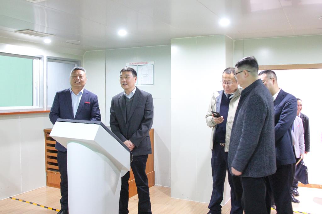 王华渊副局长表示将大力支持学校船员教育与培训工作,协调解决学校提出的相关问题,并实地查看了学校航海操纵模拟器、国家级航海虚拟仿真中心、轮机模拟器、自动化机舱等教学实训设施。(办公室)