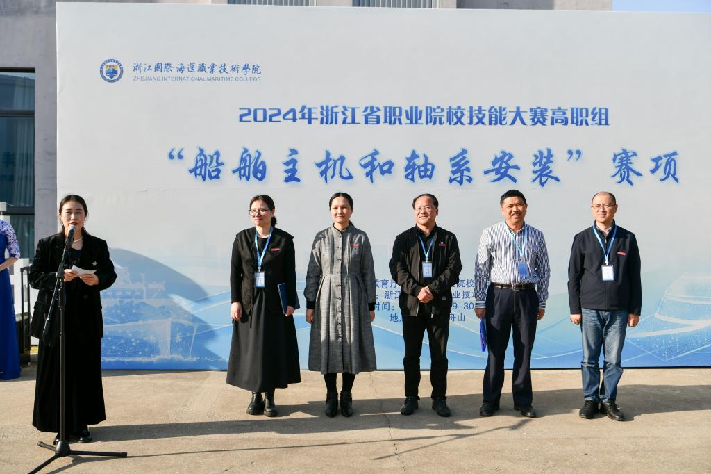 3月29日,2024年浙江省职业院校技能大赛“船舶主机和轴系安装”赛项开幕式在我校国际海员培训楼一楼小广场举行。赛项专家、仲裁长浙江海事局船员考试中心调研员任德夫,校党委副书记孔志光,教务处处长郑燕华,海洋装备工程学院党总支书记罗秀峰、副院长何琪等出席开幕式。开幕式由教务处副处长郭娟主持。
