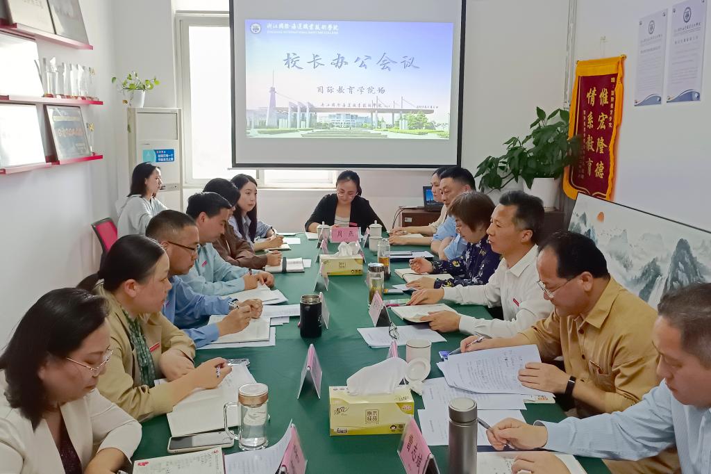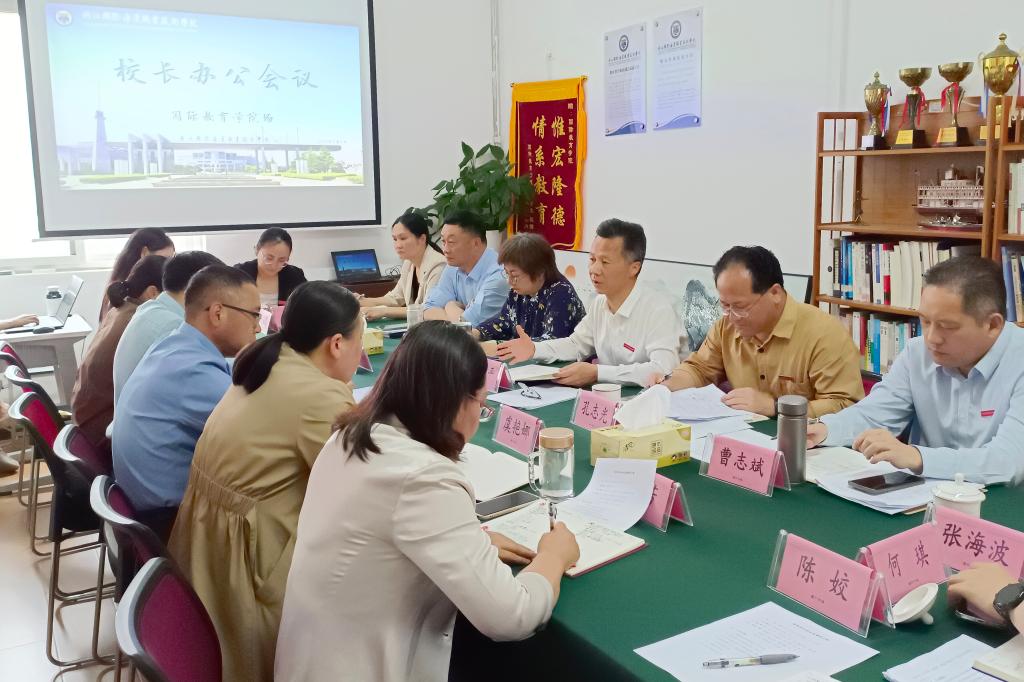 校领导孔志光、李丽、曹志斌、夏志刚,办公室、教务处、学生处、科研与合作处等部门负责人参加会议。(国际教育学院)
