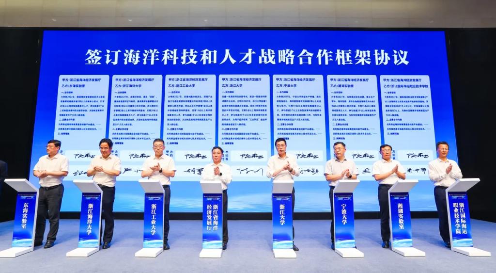 会上,浙江省海洋经济发展厅与浙江大学、浙江工业大学、宁波大学、浙江海洋大学、湘湖实验室、东海实验室和我校等7家高校院所签订了战略合作框架协议,我校为唯一一所职业院校。大会还发起成立浙江省海洋产业科技创新发展联盟,中国科学院院士、崂山实验室主任吴立新,中国科学院院士、浙江大学校长杜江峰作了海洋产业科技创新发展主题报告。