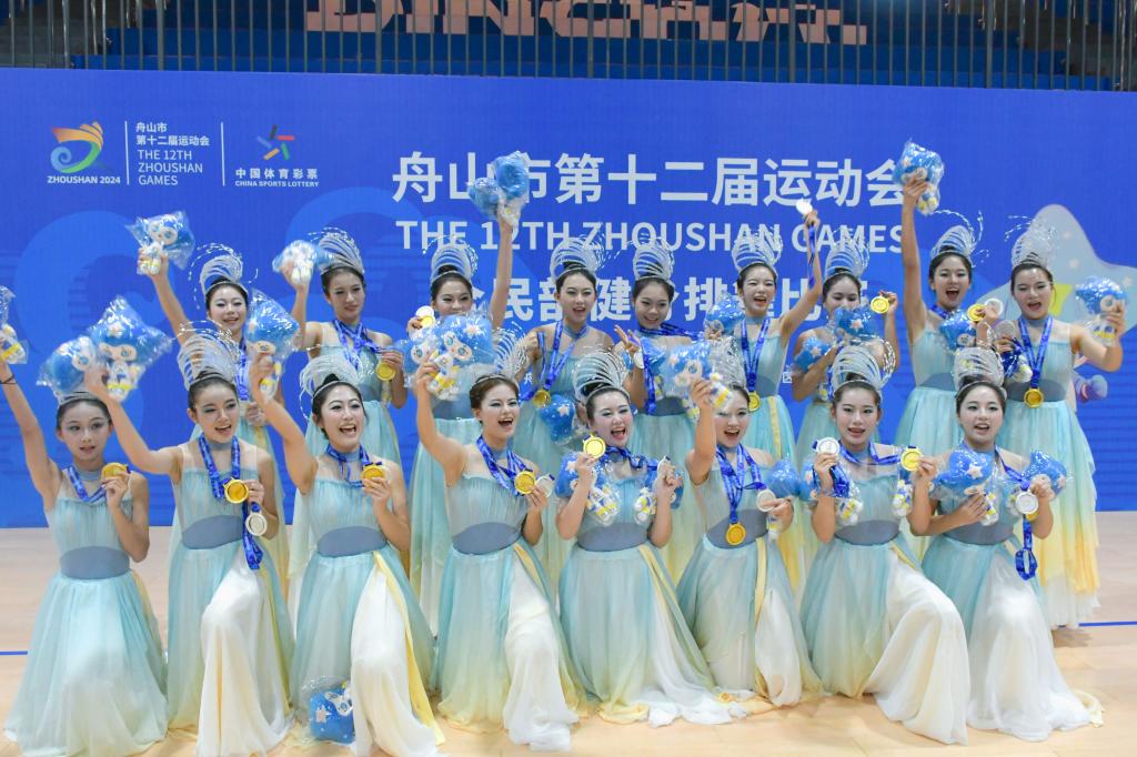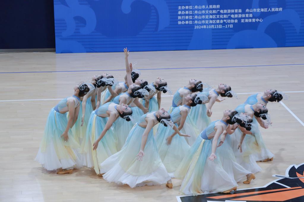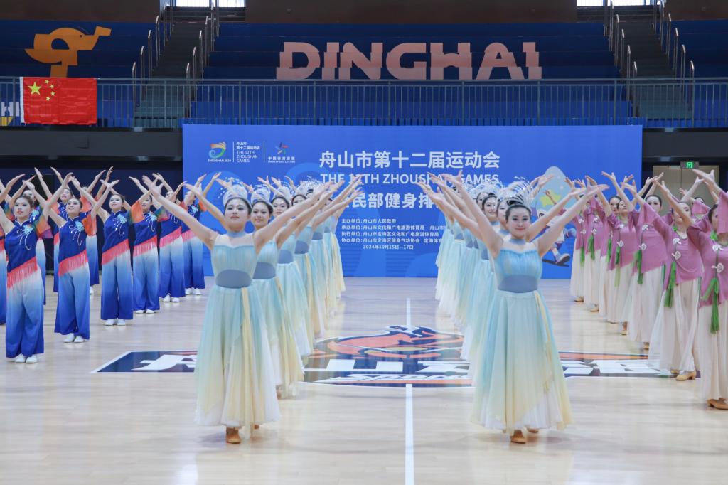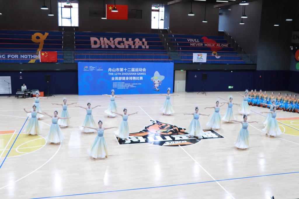 10月15日-16日,舟山市第十二届运动会全民部健身排舞比赛在定海体育中心篮球馆顺利举行。本次比赛由舟山市人民政府主办,舟山市文化和广电旅游体育局和舟山市定海区人民政府承办,旨在积极推动健身活动惠及全民,增强人民体质,提升人民群众的获得感和幸福感。我校“海韵花儿”健身舞蹈队获得了自选项目第一、规定项目第二、团体总分第一名的好成绩。比赛中,来自现代港口贸易学院吴垚雅、海洋旅游学院丁博文、国际教育学院胡嘉纹等17名队员们宛如朵朵盛放的花儿,甜美而优雅、炙热而有力。