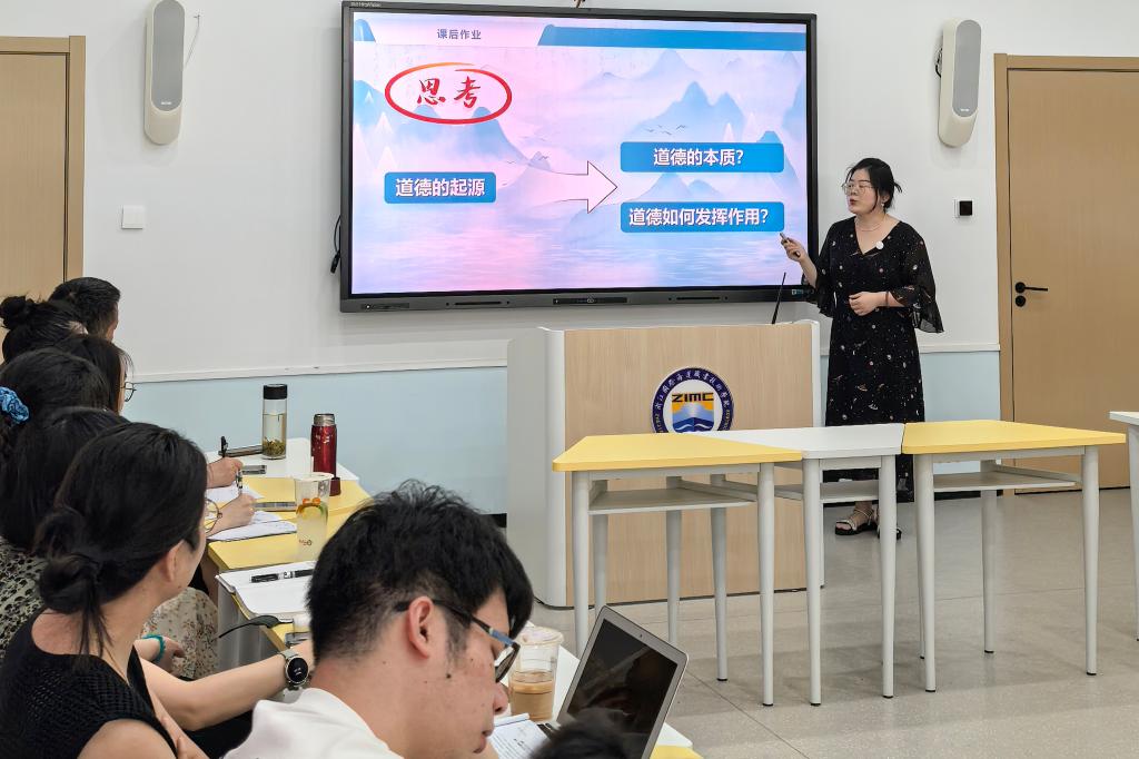 会上,2025 年《思想道德与法治》全省备课会教学比赛特等奖获得者沈贞妮老师以《道德的起源》为题进行示范授课,展现了扎实的理论功底与创新的教学方法;《国家安全教育》课程团队负责人何丽丽老师则从课程概述、设计思路及规划安排三方面作说课分享,系统介绍了课程建设的框架与重点。两位老师的展示为参会教师提供了有益借鉴,引发热烈讨论。