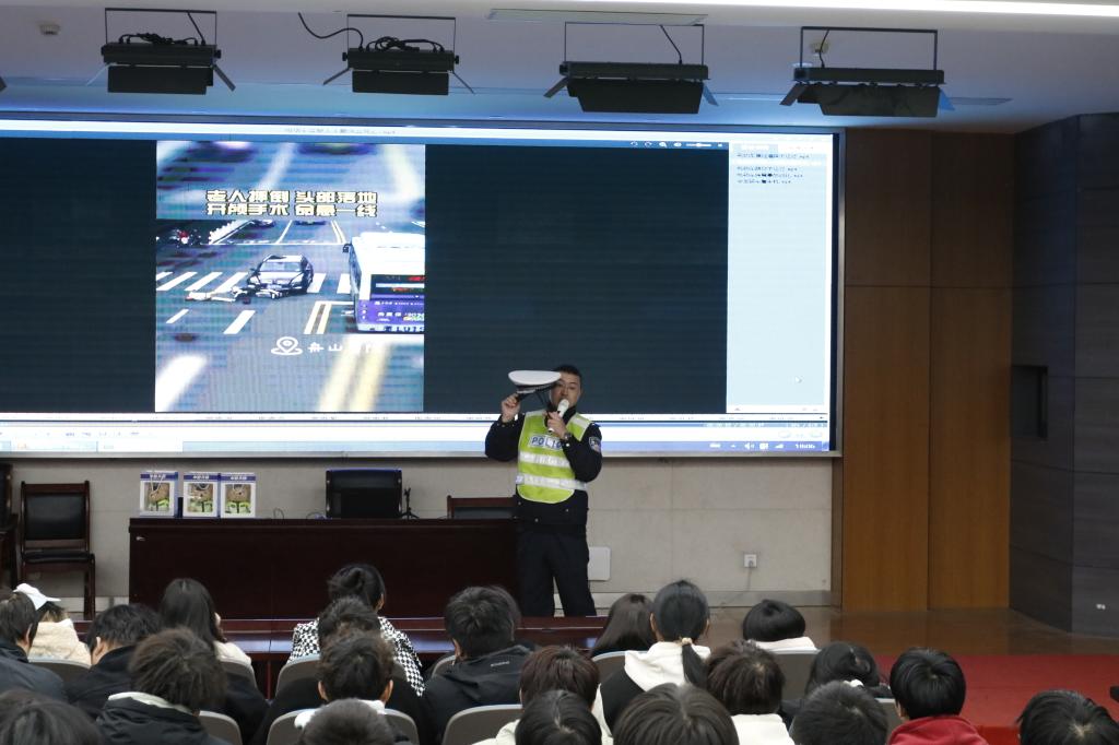 讲座邀请了交通警察大队警官担任主讲。张警官结合近年来我国交通事故典型案例,分析了交通事故发生的原因,以及如何有效预防交通事故。详细讲解了驾驶机动车、骑行电动车和步行的注意事项,提醒师生们在出行时要时刻保持警惕,自觉遵守交通法规。他表示,交通安全关系到每个人的生命安全和家庭幸福,希望大家能够将所学知识传递给身边的人,共同营造安全、有序的交通环境。