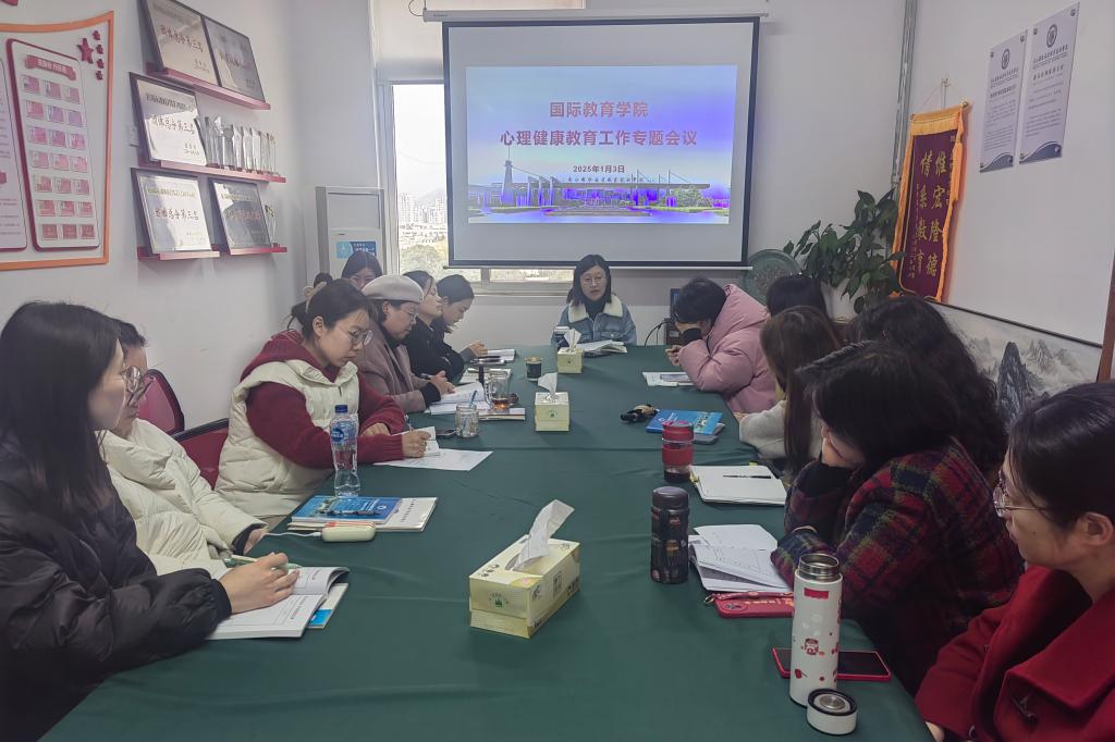 为进一步提升学院心理健康教育工作,1月3日,国际教育学院在海智楼1501会议室召开心理健康教育工作专题会议。学院党总支书记金洁、院长吴旭光、心理咨询中心主任王晶老师及全体班主任、辅导员参加了会议。会议由学院副书记虞艳娜主持。