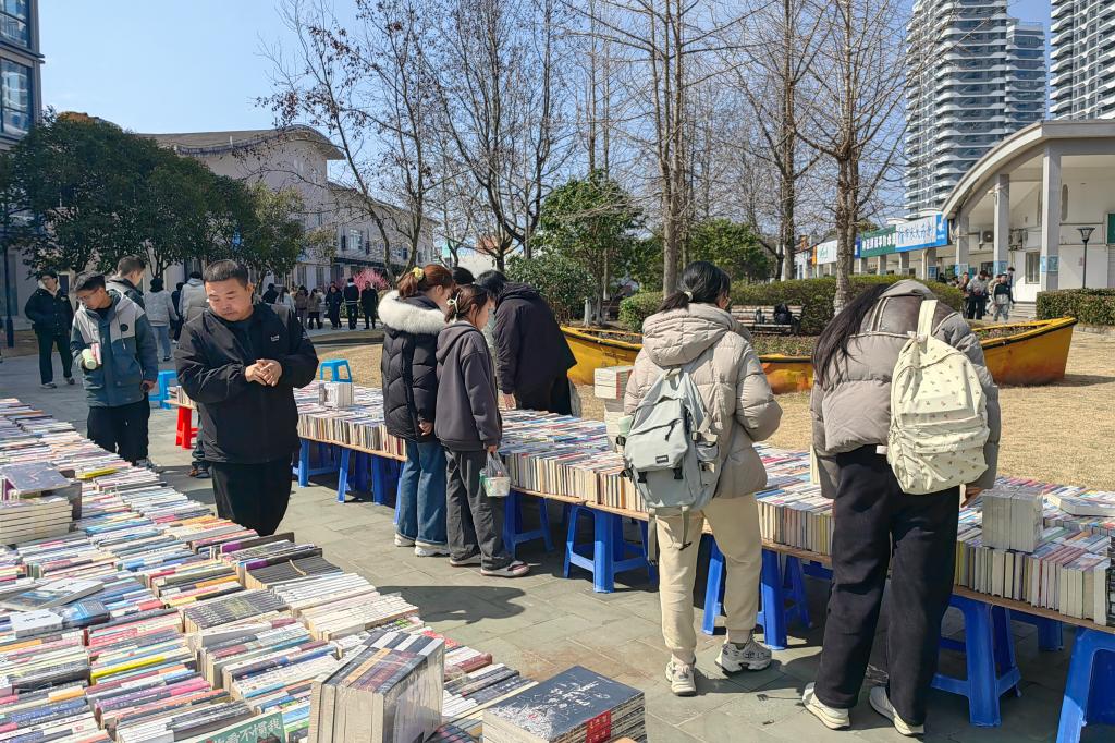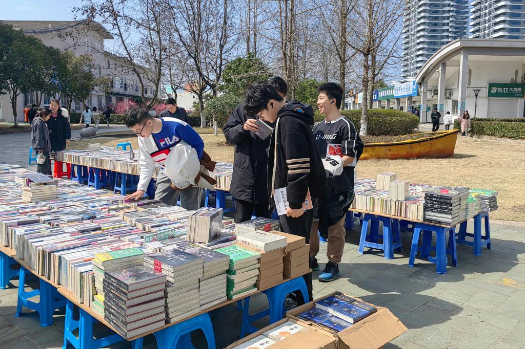 墨卷至恒,书香致远。春风向暖的午休时光,大批学生穿梭于各类书摊前,挑选心仪图书,阅读、交流……你来我往间结下了共享好书、传递快乐的情谊。老师们也被这浓郁的书香氛围所感染,纷纷加入阅书、购书的大军行列,全校师生尽情享受着淘书的乐趣!