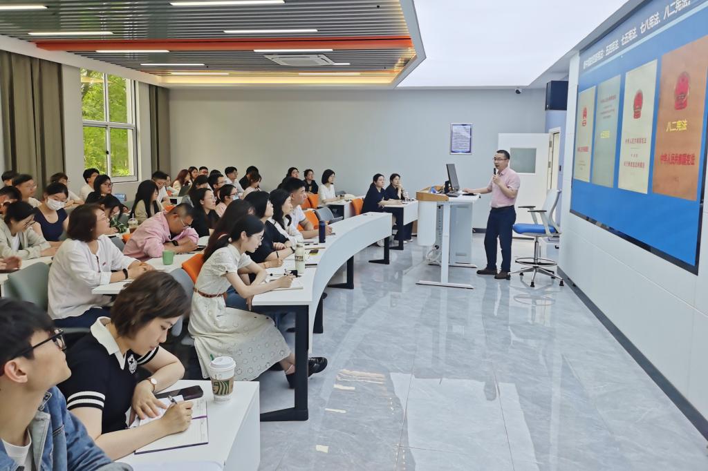 近日,校党委学工部在海德楼4117教室组织开展“深入学习贯彻全国两会精神和全省教育强省建设大会精神专题培训会”。市人大常委会研究室副主任郭振兴担任主讲,学工部全体人员,各二级学院党总支副书记、辅导员、班主任及学生干部代表等百余人参会。