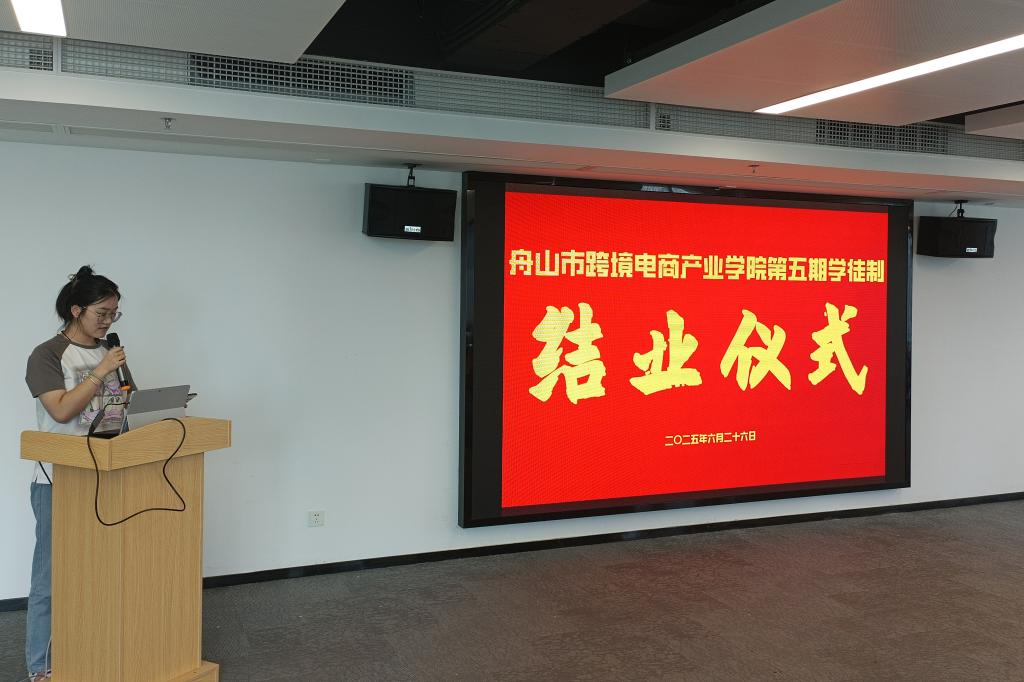 6月26日,舟山市跨境电商产业学院第五届学徒班结业典礼在舟山市跨境电子商务综合产业园举行。现代港口贸易学院院长王贵斌、舟山同泽科技有限公司总经理汪新有以及50余名师生共同出席了本次结业典礼。