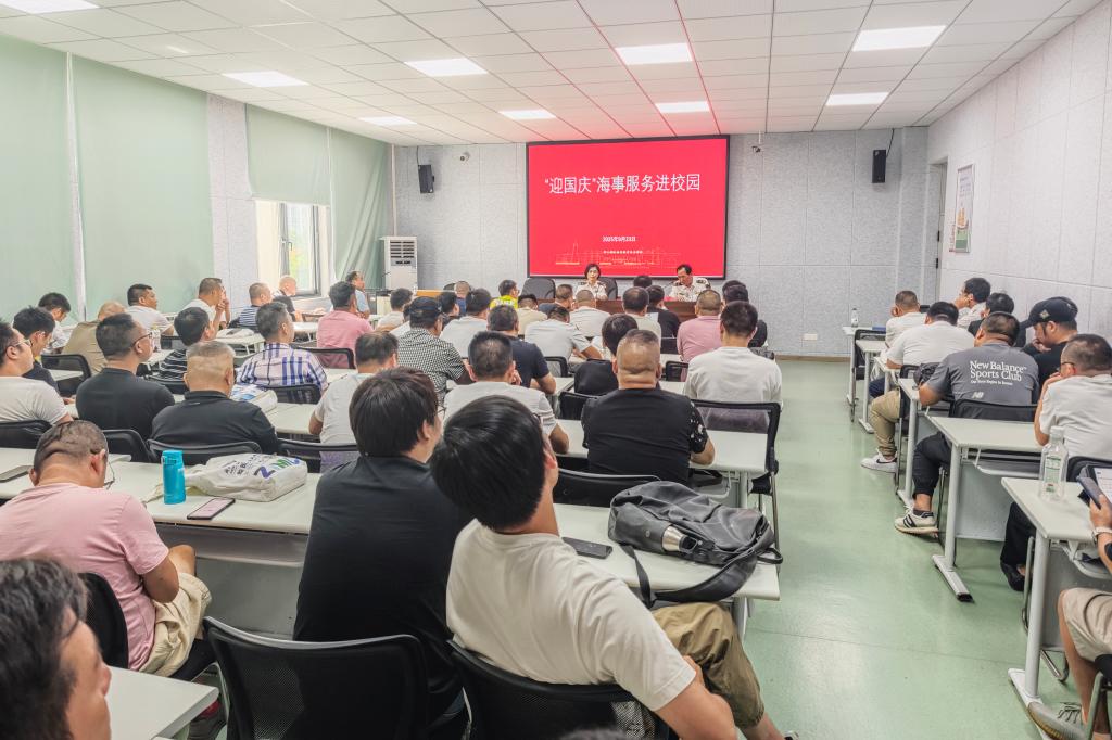 为切实解决当前船员培训中存在的‌法规应用能力不足‌、‌适任证书办理流程不清晰‌等突出问题,9月23日,航海工程学院船员培训中心联合舟山海事局共同举办迎国庆“海事服务进校园”专题宣讲活动。活动通过案例教学、规则解读、互动答疑等形式,为80余名培训船员及教师提供了系统指导。