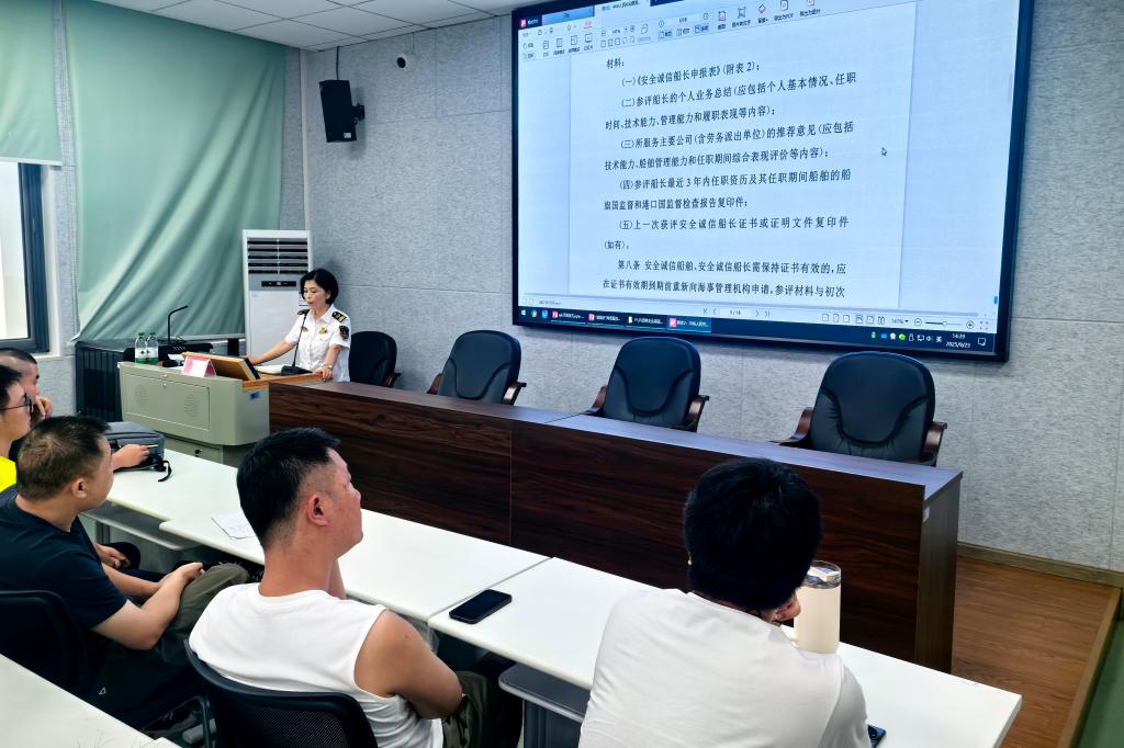 参训船员聚焦适任证书实际换发过程中的常见问题积极提问,邵元荣老师逐一细致解答,切实化解了船员们的实操困惑。此次宣讲为船员们在今后的工作中切实提供了帮助,实现了服务船员、助力教学的双重目标。(图文/郑凯雨