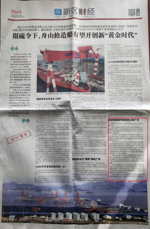 《舟山日报》:新区财经|限硫令下,舟山修造船有望开创新“黄金时代”