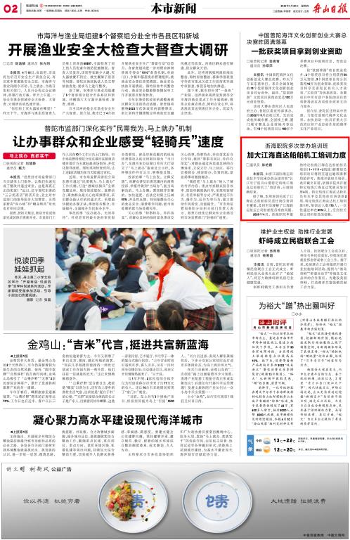 2020年4月,浙海职院申报的特定航线江海直达船舶船员培训(1-1和1-2航线)新增船员培训项目得到交通运输部海事局的许可,获准开展相关培训。此后截至目前,浙海职院共开展特定航线江海直达驾驶员培训班4期,特定航线江海直达轮机员和水手及其他船员培训班2期,特定航线江海直达机工培训班1期,培训总人数175人,一次性通过率在85%以上,受到相关船公司和船员的信赖。