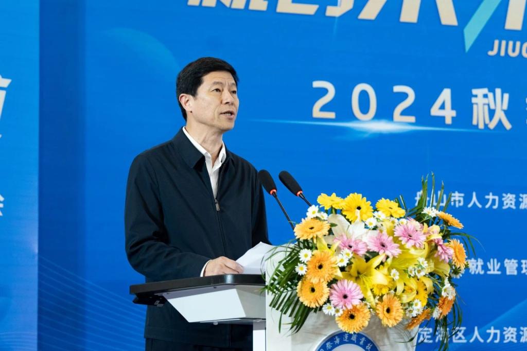 舟山市委组织部副部长、舟山市人社局局长刘涛代表市人社局致辞,介绍了市人社局在促进在舟高校大学生就业创业方面所做的努力和取得的成效。他指出,就业见习双选会,是着眼于促进青年人才交融发展、支持青年融入就业的重要活动。市人社局将一如既往当好政策“宣传员”、解忧“服务员”,从开发就业见习岗位、组织实施基层服务项目、落实就业创业惠民政策入手,进一步拓展企业用工渠道,营造高质量发展良好就业环境,切实维护高校毕业生合法权益,多措并举助力各类青年人才就业创业。