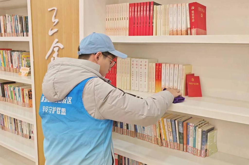 志愿者们和“平安守护联盟”社团成员分工合作,井然有序。志愿者们清扫走廊、擦洗宣传窗,清除绿化带中的杂物。社团成员则发放反诈宣传册,提醒居民们警惕各种诈骗行为,保护自己的财产安全和合法权益。