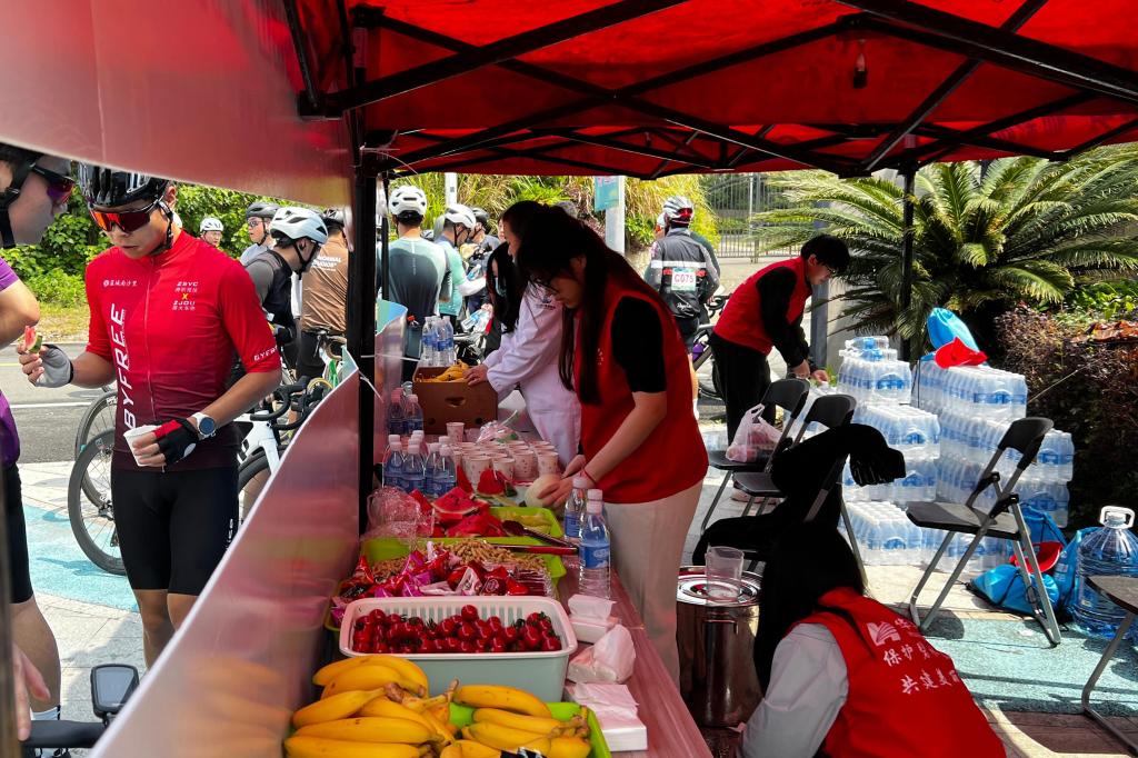 89名石化学子,怀揣着对志愿服务的热忱,不惧辛劳,全身心投入。从清晨6点到午后3点,他们的付出不仅让骑游大会顺利进行,更让每一位参与者都感受到了岱山这座海岛小城的独特魅力与人文关怀,用青春之力筑梦星辰大海,为这场骑行盛宴留下了难忘的志愿记忆,也为岱山的城市形象增添了亮丽的一笔。(图文/孙丹晔)