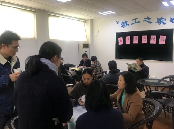 12月13日下午,校工会为了更好地为全体教师的健康服务,邀请了中医专家李虹等中医师走进校园坐诊,给需要服务的老师们问诊搭脉。专家们针对每一位教师在今年体检中查出的具体问题,结合自己的丰富经验,面对面、一对一地答疑解惑、提出治疗建议。给每位前来问诊的老师开出了“健康药方”,让老师们都能满意而归。老师们纷纷表示:“名中医进校园活动真是一份健康大福利!”